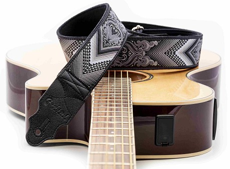 Arrow Black Gitarrengurt – Vintage-Stil in Graustufen mit Hippy-Spirit