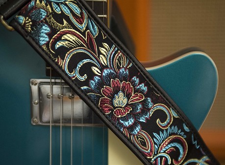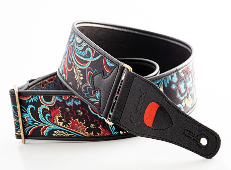 Beppu II Gitarrengurt: Beppu (別府市; Beppu-shi) ist die japanische Stadt der heißen Quellen, bekannt für ihre "Höllen auf Erden" und ihre einzigartigen Bäder, die man nirgendwo sonst auf der Welt findet. Beppu hat die meisten "Onsen" (Dampfauslässe, die aus der Erde aufsteigen) in ganz Japan und das größte Volumen an heißem Wasser weltweit. Wir wollten diesem faszinierenden Ort einen Gitarrengurt widmen und fanden einen spektakulären Stoff, der den charakteristischen japanischen Stil perfekt einfängt. Dieser Gurt mit schwarzem Hintergrund und botanischen Stickereien ist ein wahres Schmuckstück, das sogar die schlichteste Gitarre aufwerten kann, falls jemand seine Gitarre als unscheinbar empfindet ;) Und wenn dem so ist, wird dieser Gurt deine Gitarre definitiv eleganter wirken lassen.