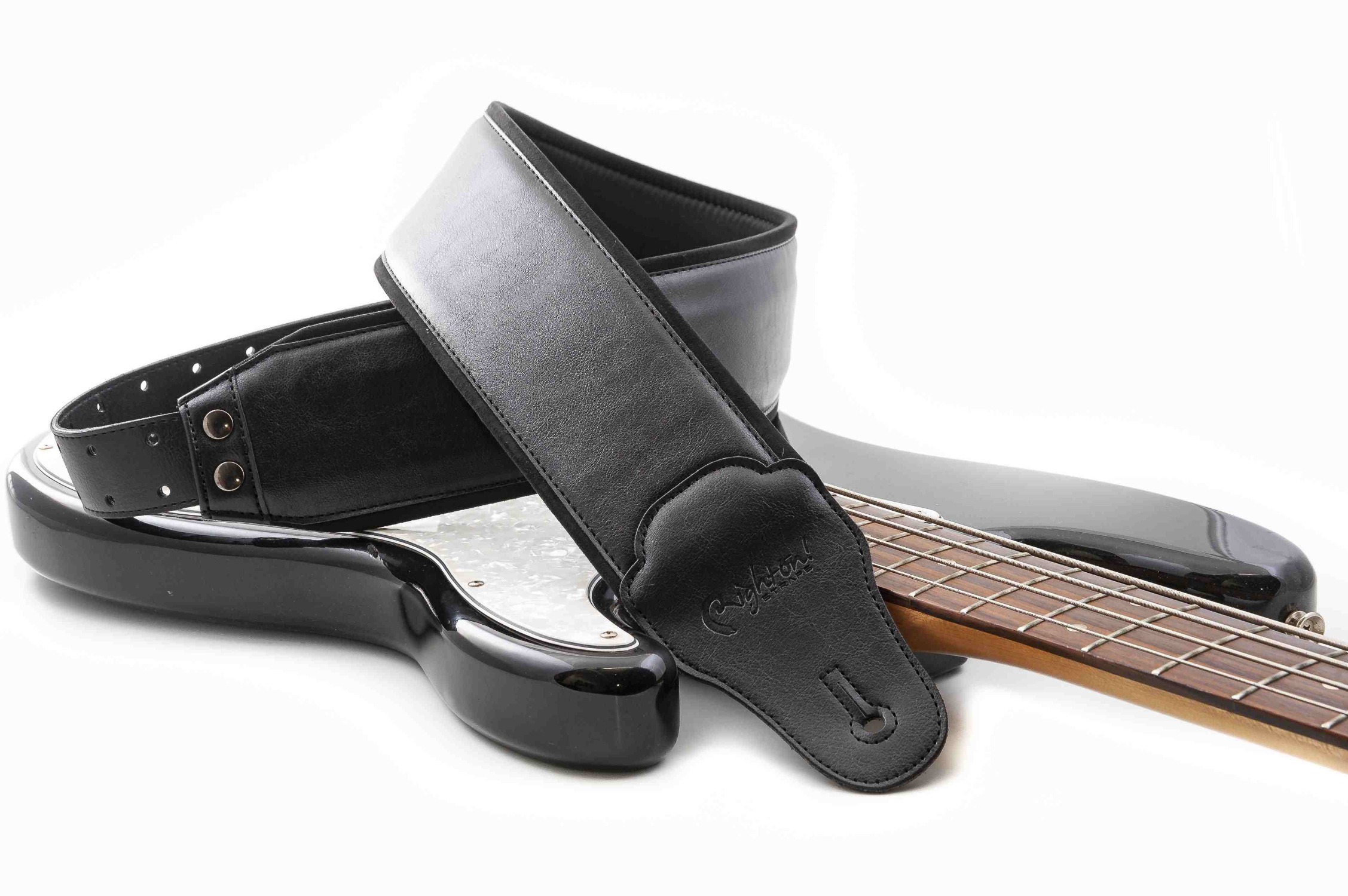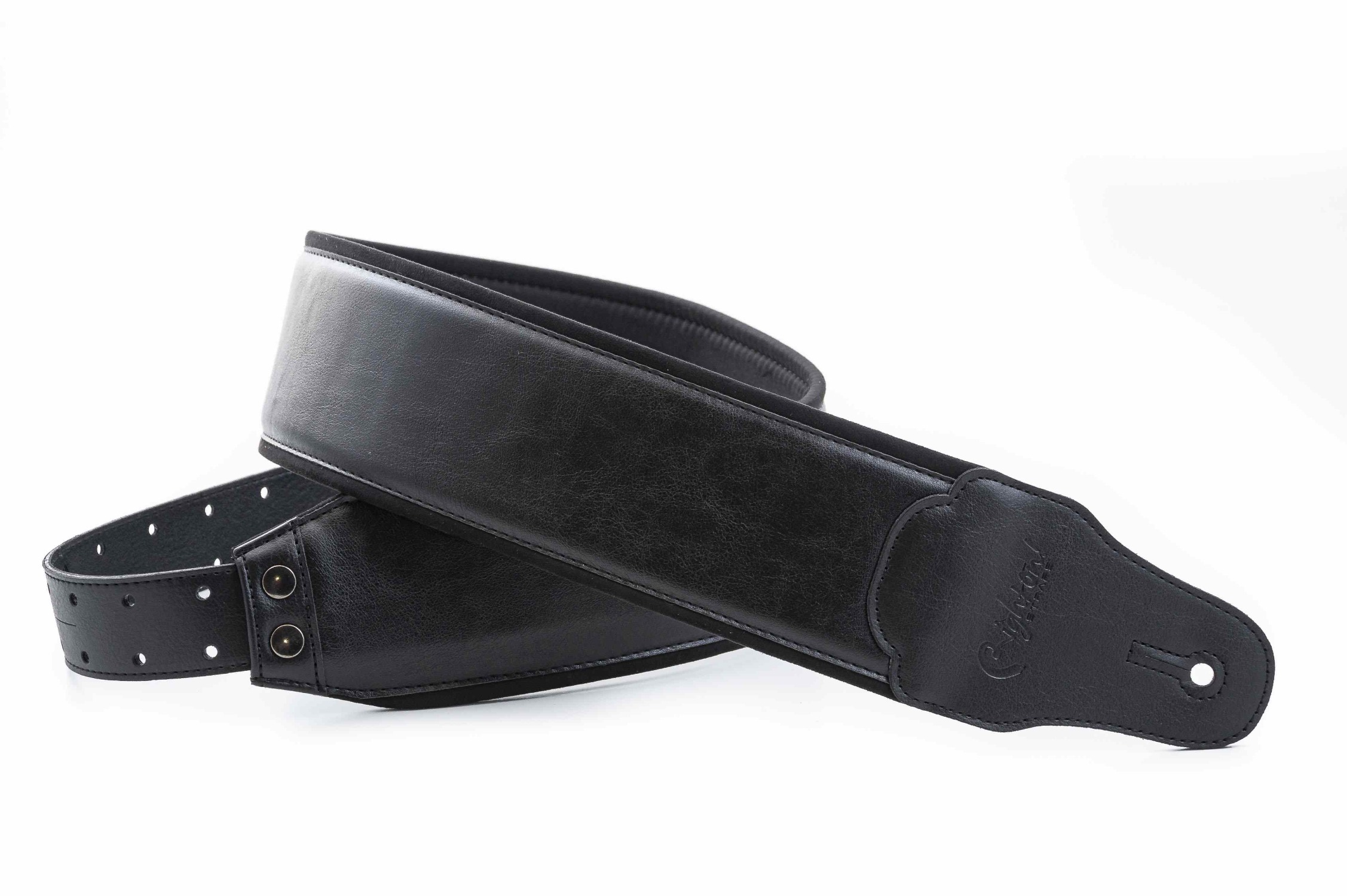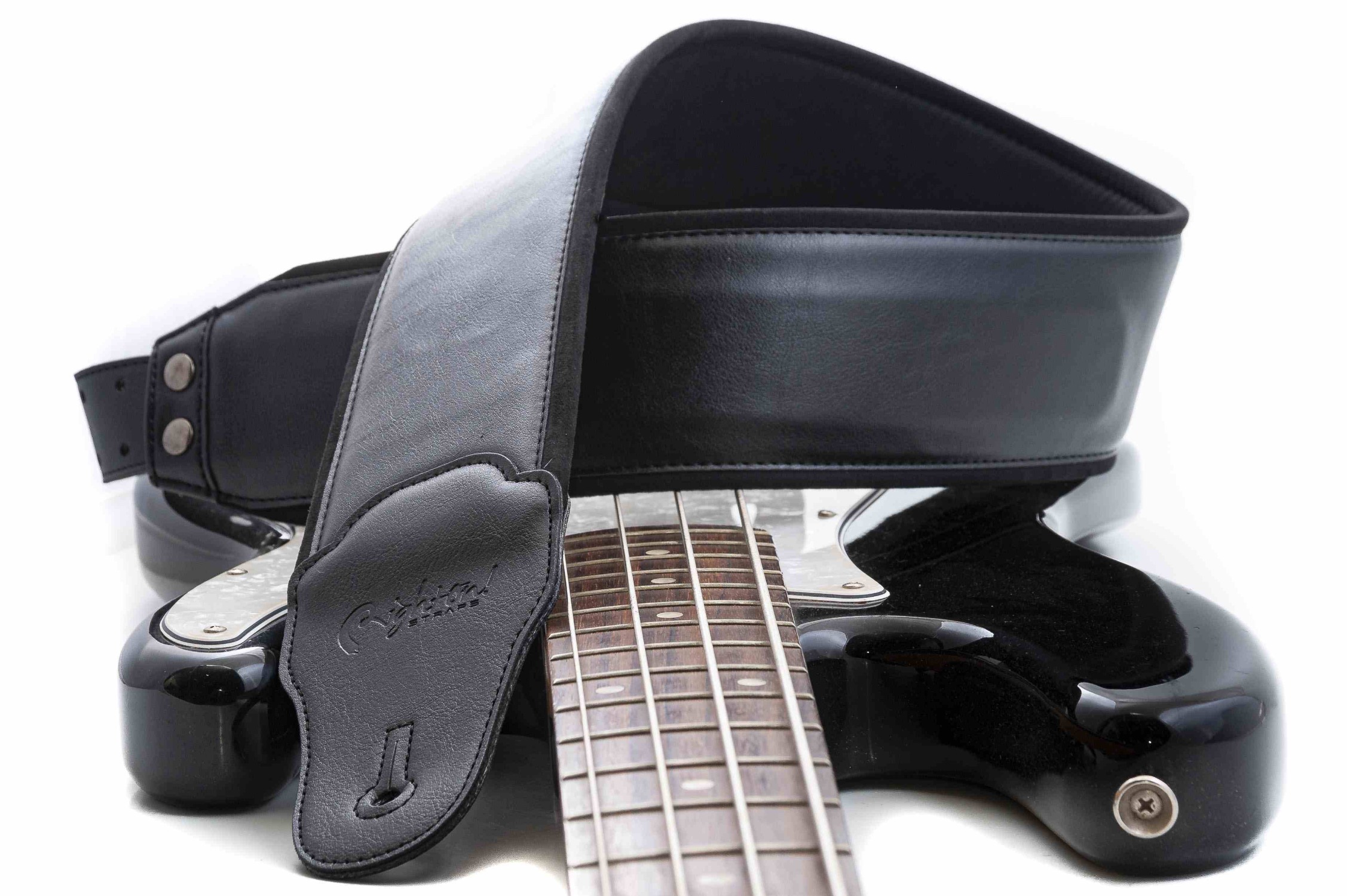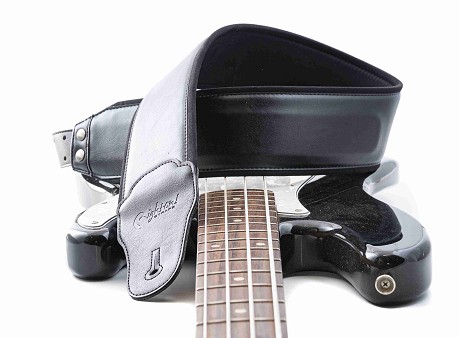 Charm-80 Black Bass Strap: A wide strap designed for bass and guitar, with a synthetic surface. This vegan strap contains no animal products. Its wide design and 5 mm latex padding, along with the RAS adjustment system, make it particularly comfortable on the shoulder, providing excellent weight distribution and support for the instrument.