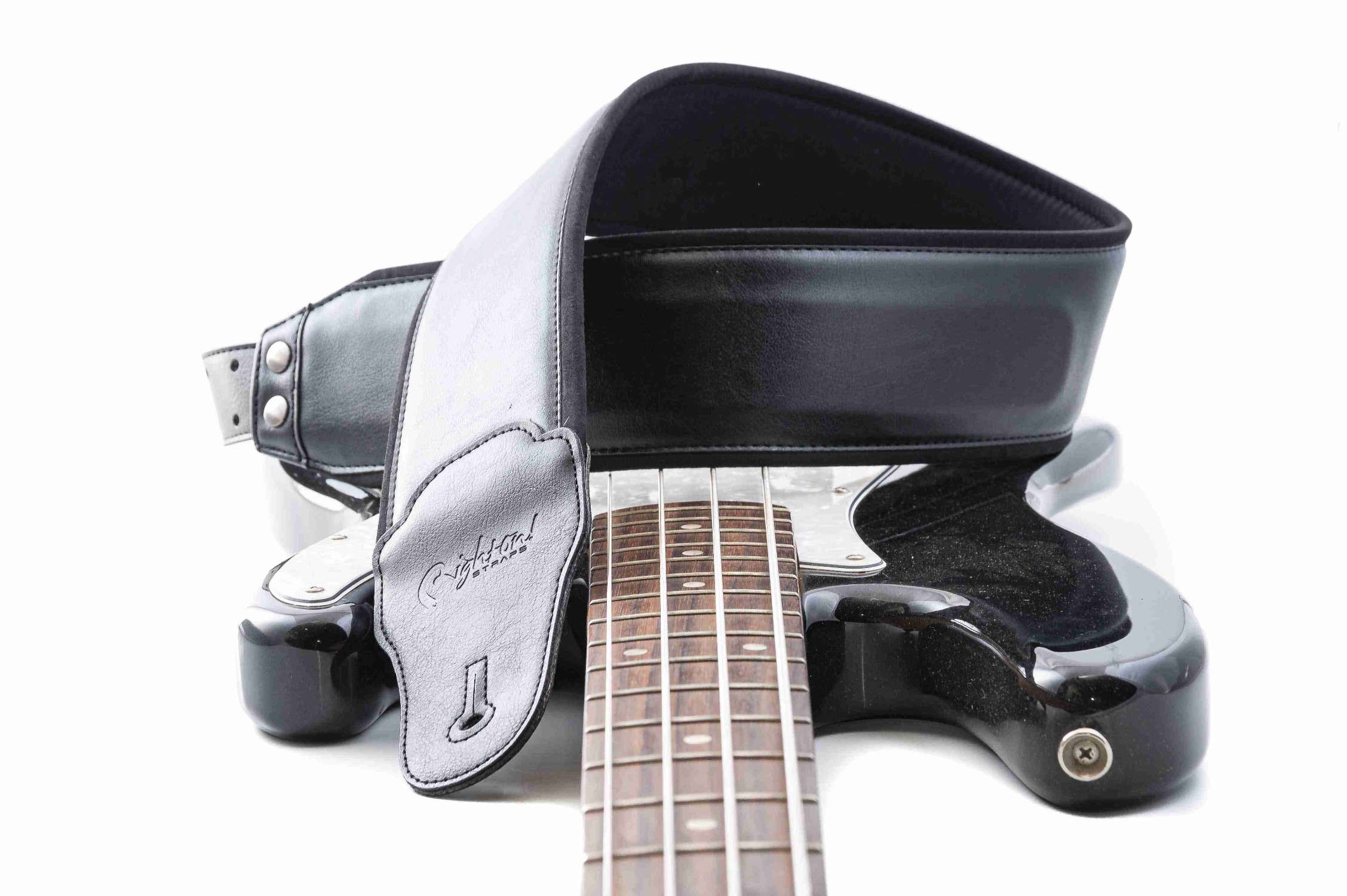 Exclusive RightOn´s degree of elastic guitar strap perfect for guitarist or bass player who are looking for a standard bass or guitar strap that can relieve pressure points while playing guitar or bass on the most comfortable way.