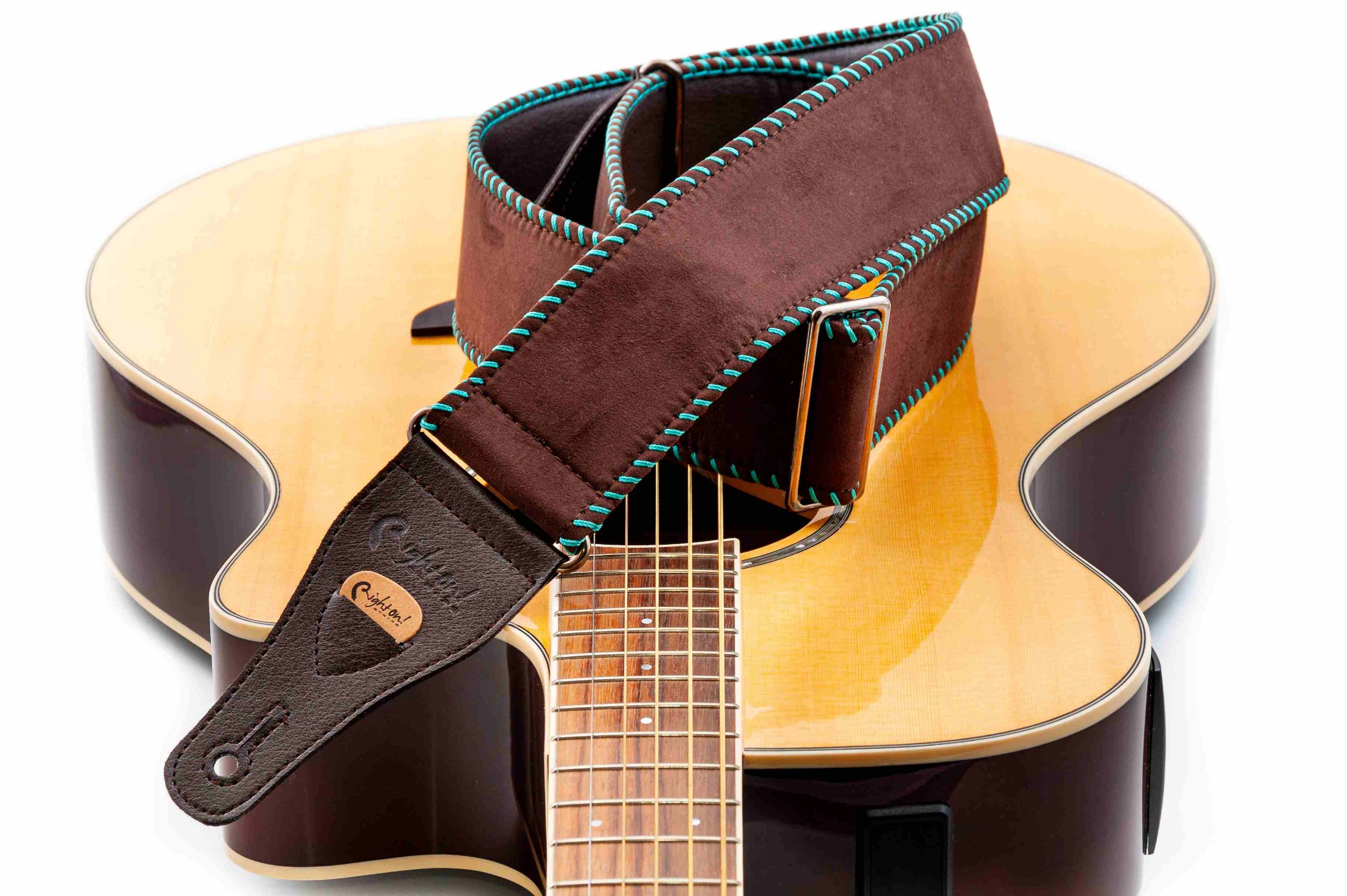 Exclusive RightOn´s degree of elastic guitar strap perfect for guitarist or bass player who are looking for a standard bass or guitar strap that can relieve pressure points while playing guitar or bass on the most comfortable way.