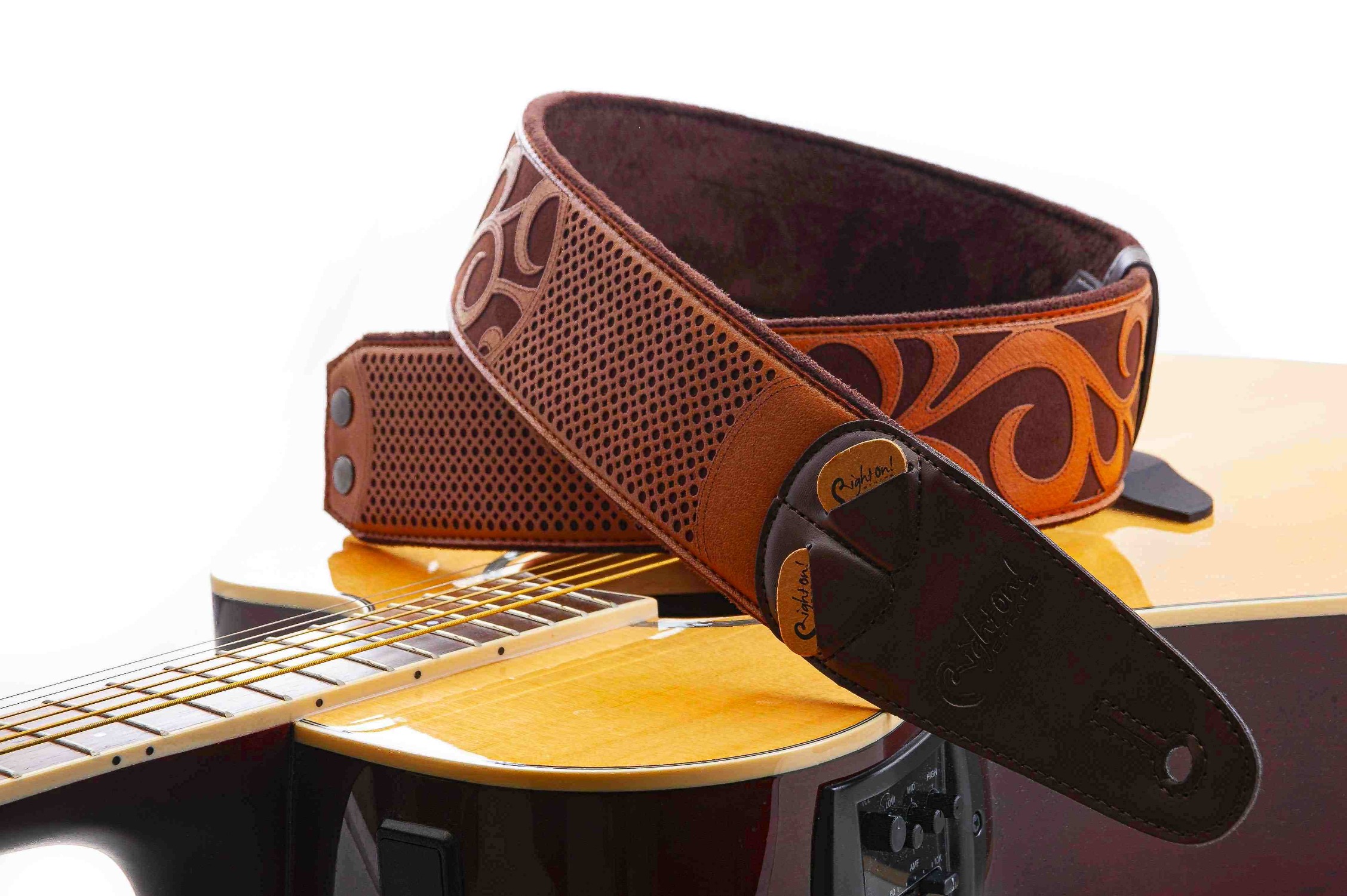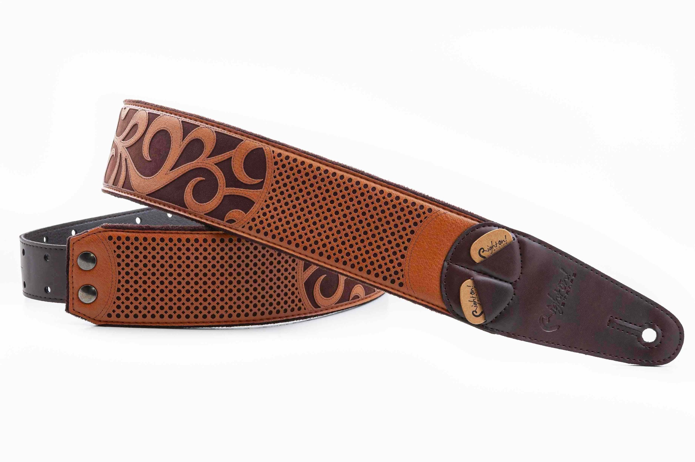 Sangle de guitare Nashville Light Brown : La sangle de guitare Nashville a une surface qui rappelle les gravures anciennes, les bottes de cow-boy et l’esprit authentique du blues et du rock de Nashville. C’est une sangle conçue pour l’aventure et tout ce qui est américain.