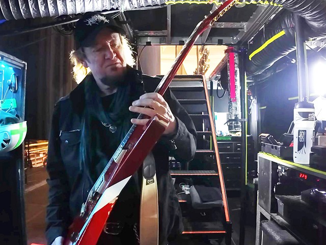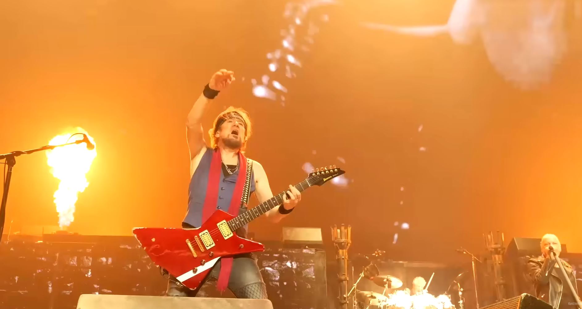 Adjuntamos un par de fotos para que podáis ver a Adrian en acción con nuestras correas. Además, encontraréis un vídeo de Ola Englund (guitarrista) mostrando el Guitar Rig de Adrian Smith, algo poco común y muy interesante, donde también se pueden ver nuestras correas. ¡Nos llena de orgullo ver RightOn! en escenarios tan icónicos!