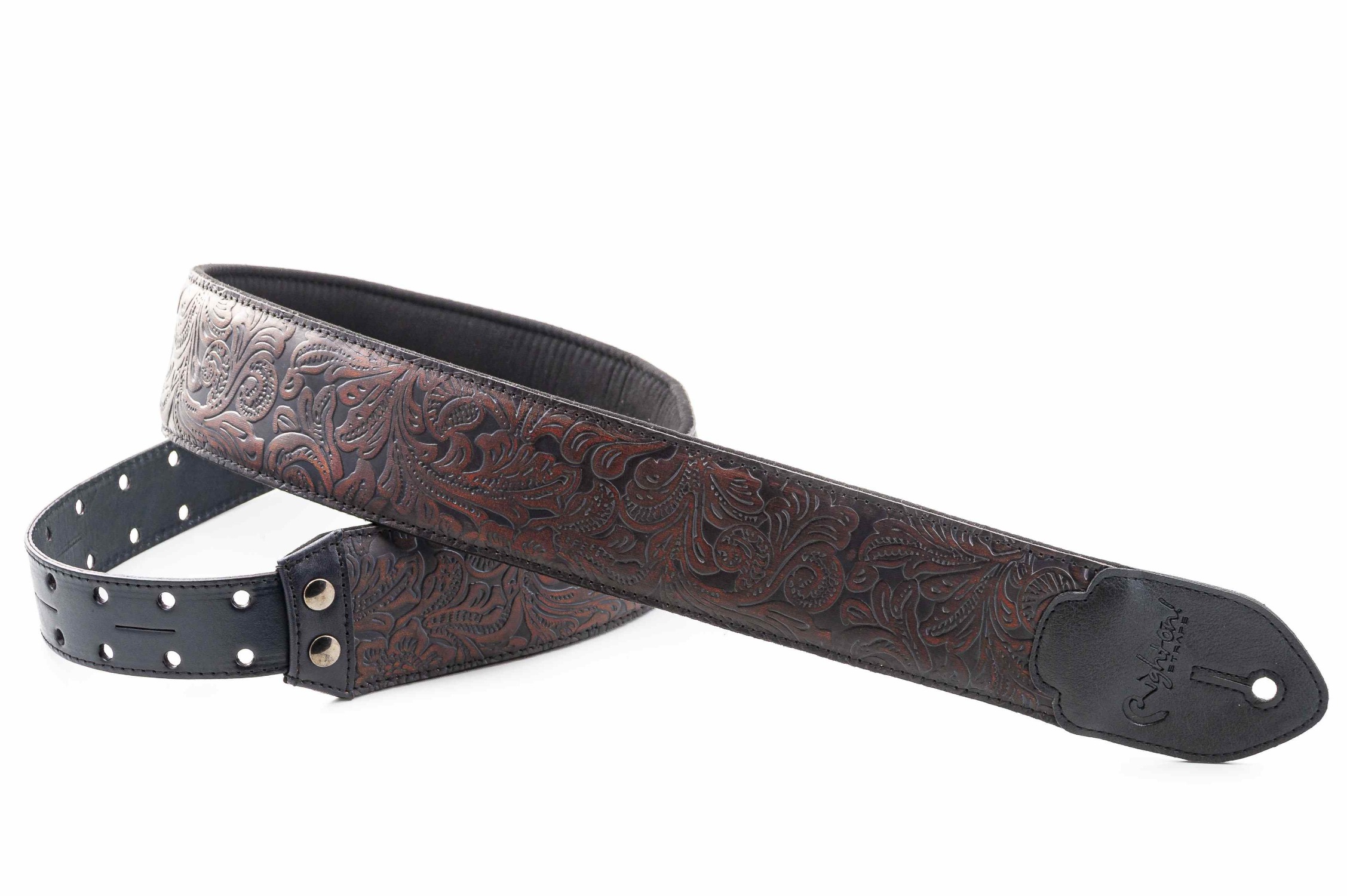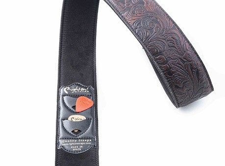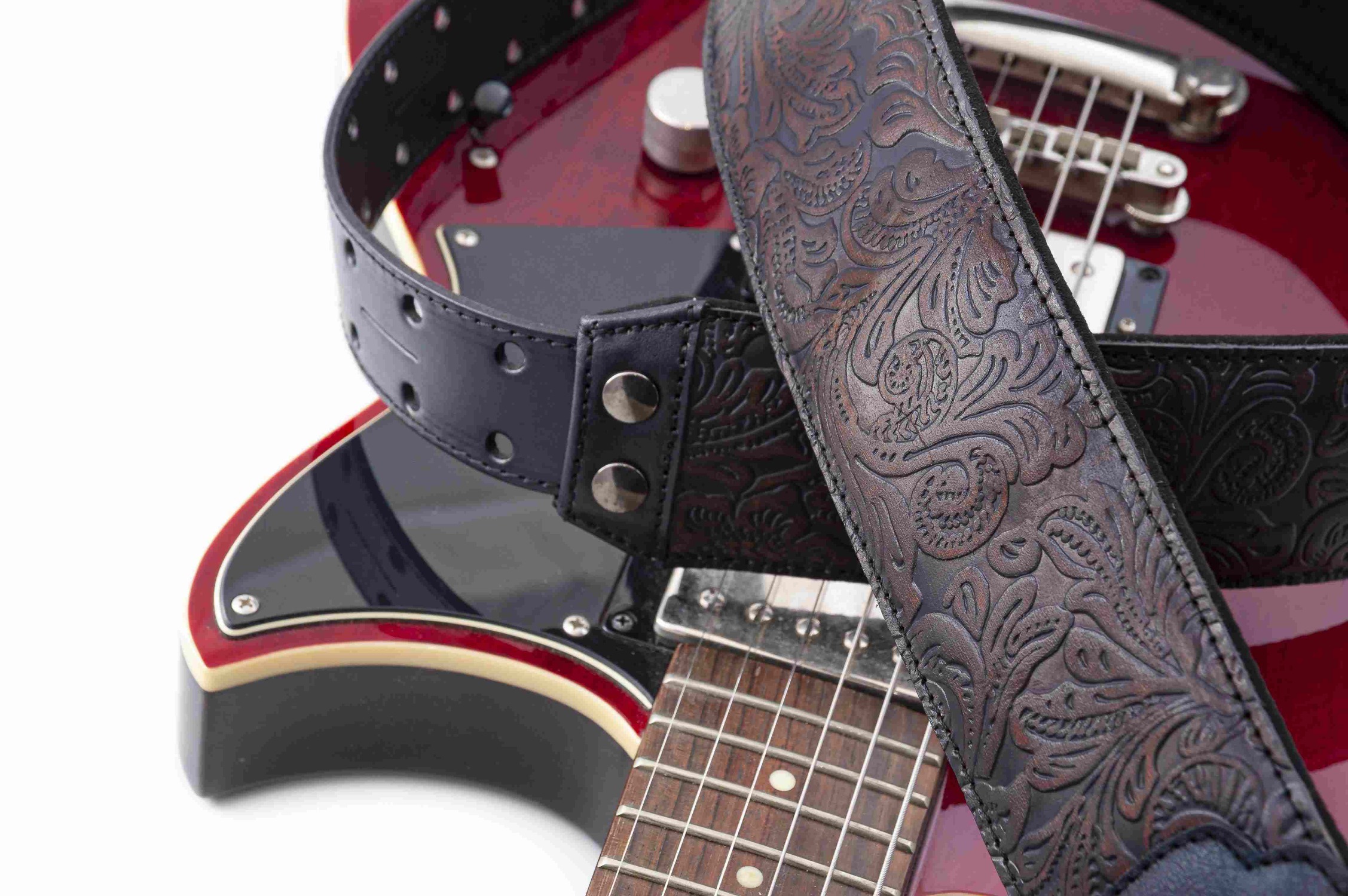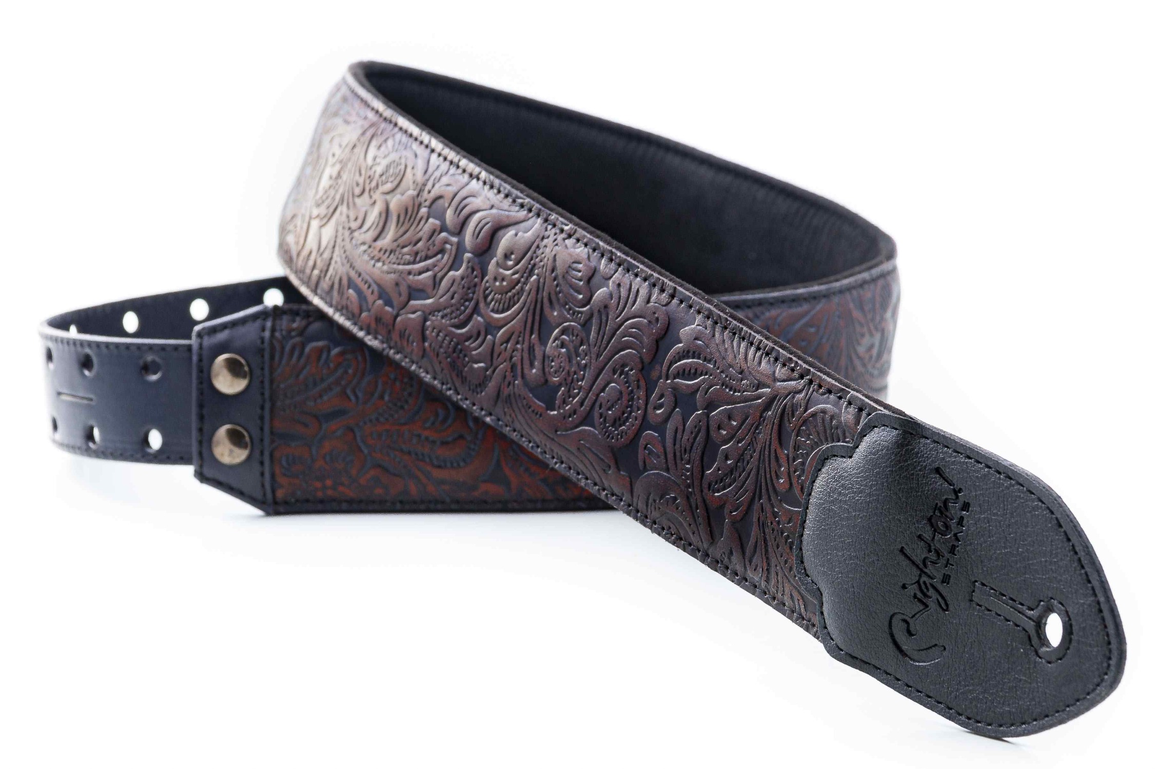Correa de guitarra de piel Blackguard Black: Cuando creamos esta correa de piel para guitarra, teníamos en mente un diseño vintage western, algo "canalla", con piel trabajada y grabada que destacara por esos detalles únicos que la hacen tan especial. Nos costó, pero finalmente dimos en el clavo, o al menos eso creemos. Esta correa está pintada y envejecida a mano, lo que convierte cada pieza en algo único.