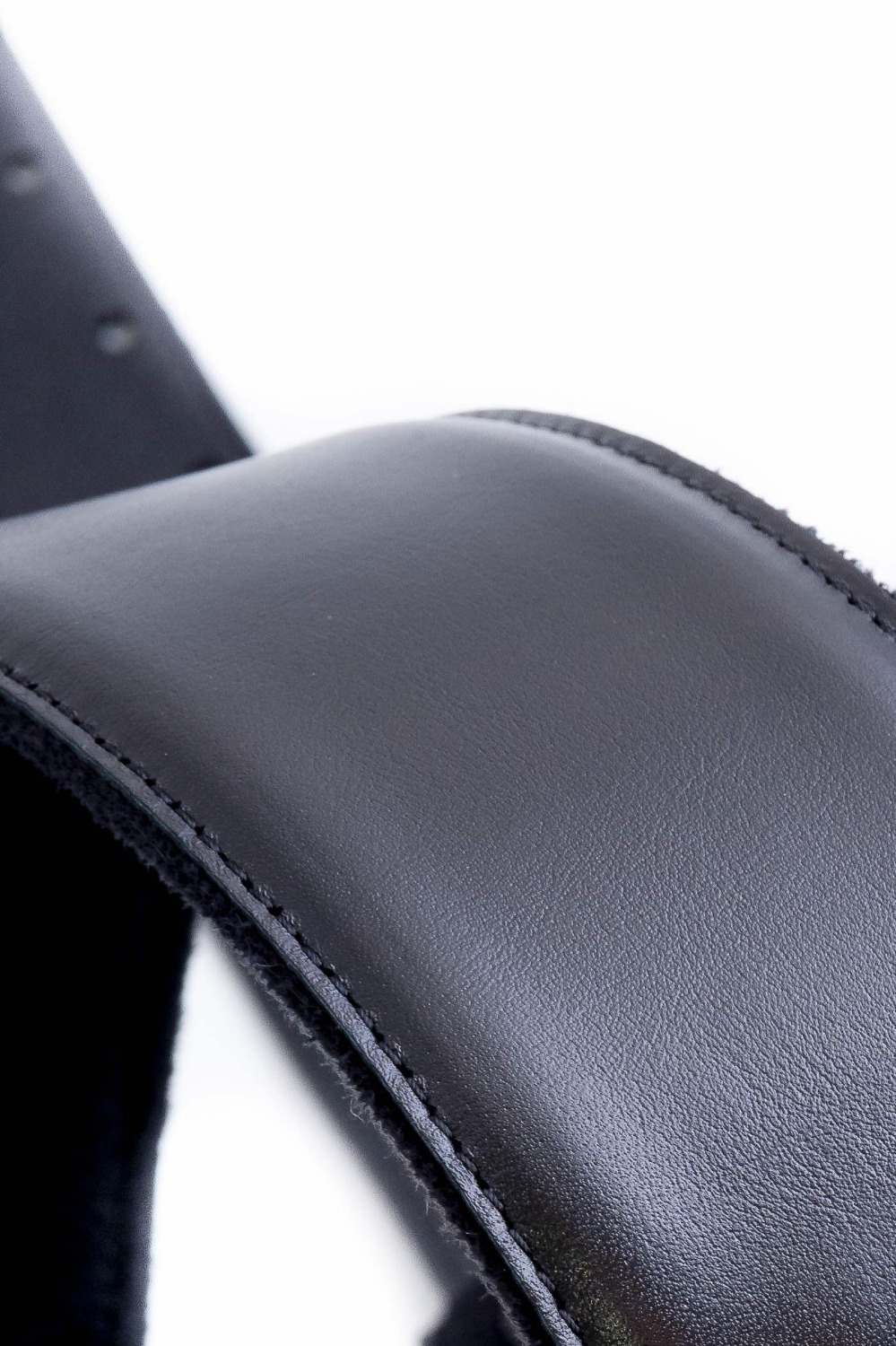 Aunque recuerda a la clásica tira de cuero de 6 cm de ancho, esta correa es diferente: está acolchada con 5 mm de látex de alta densidad, lo que la hace duradera y cómoda para tocar. La superficie está hecha de cuero bovino de alta calidad, y su forro de microfibra disipa la humedad, manteniéndote a ti y a tu ropa frescos.
